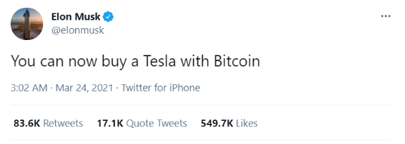 Even Elon Musk once tweeted: “You can buy a Tesla with Bitcoin.”