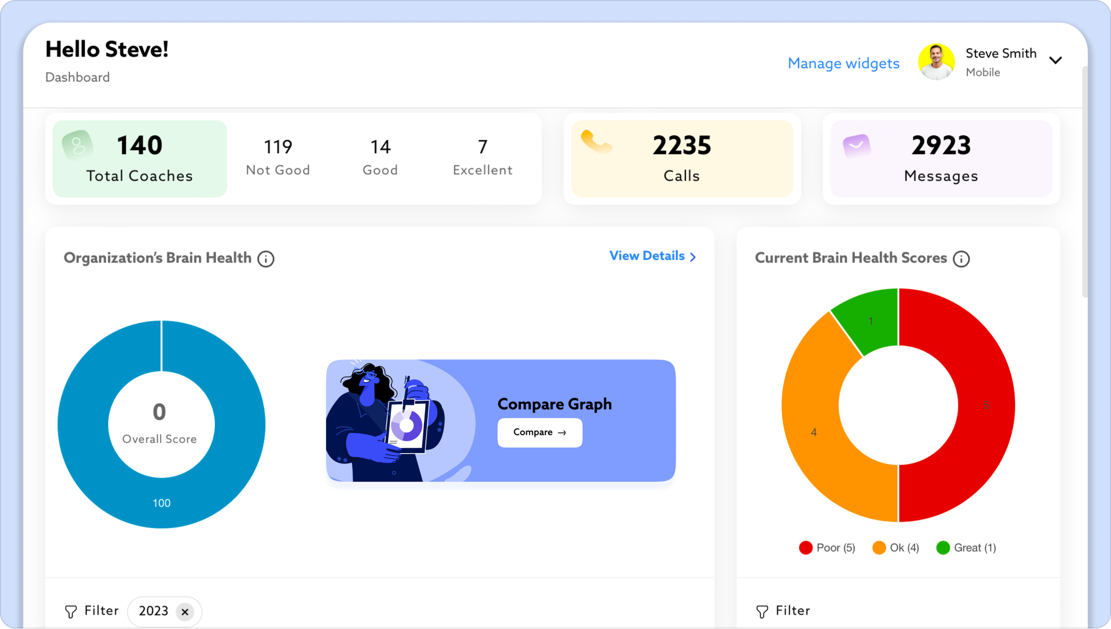 We also thought it would be good for the corporate to be able to see how everyone was doing overall. So, we suggested a dashboard that gives an overview of the mental health of the workforce.