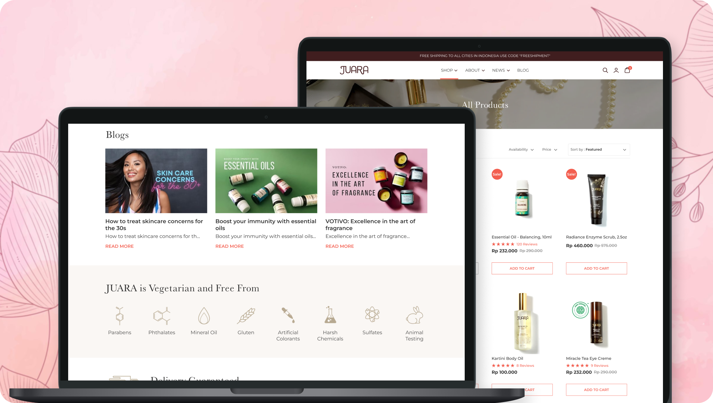 Juara Skin Care, a 14-year-old beauty brand, sought to elevate its online presence and provide a more engaging customer experience. Galaxy Weblinks revamped their website with a focus on unique features and design, leveraging customer reviews and social media integration to drive engagement and sales.