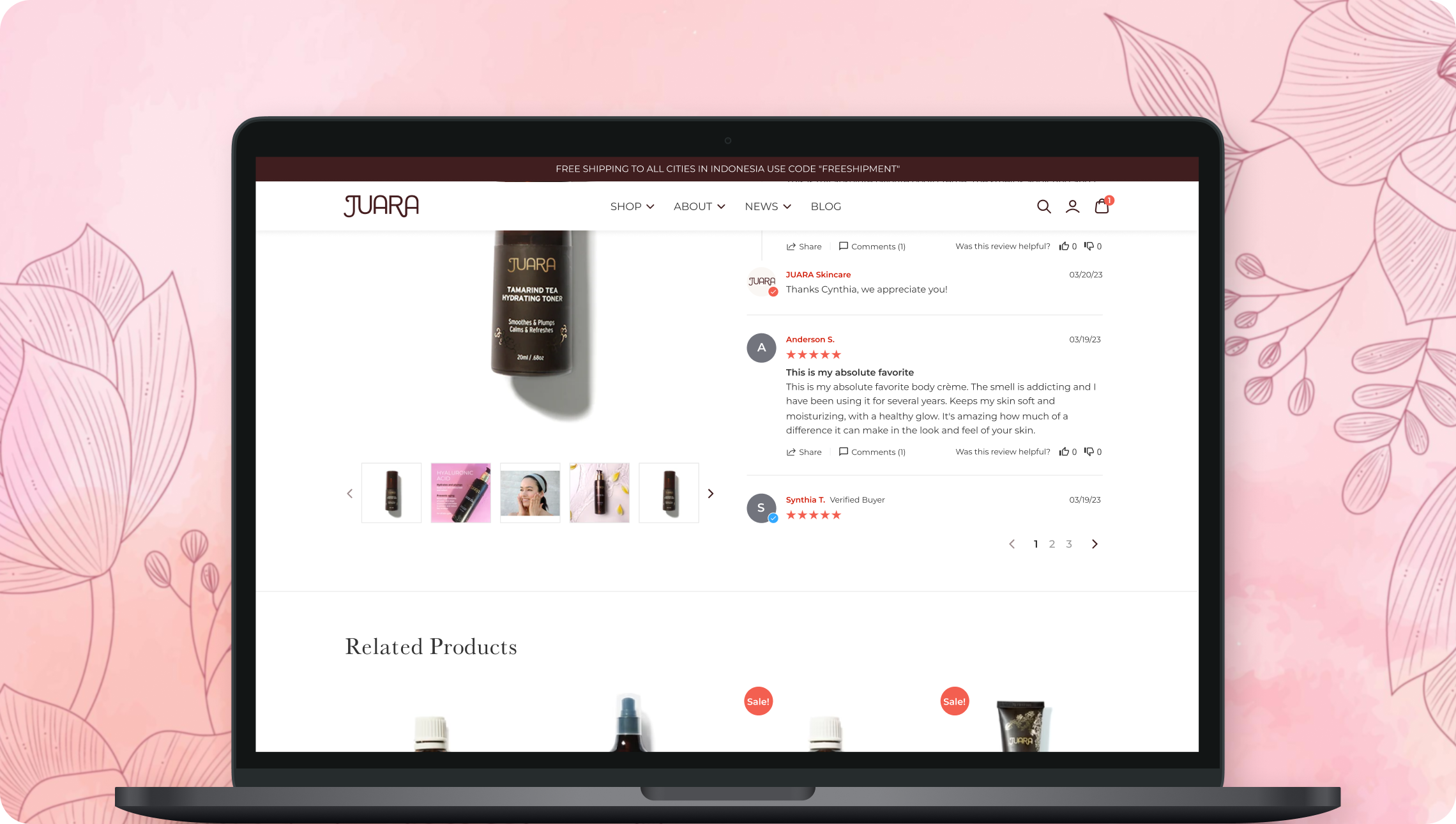 Interactive elements like customer reviews and social media feeds foster a sense of community, allowing Juara Skin Care to connect with customers on a more personal level and build stronger relationships.