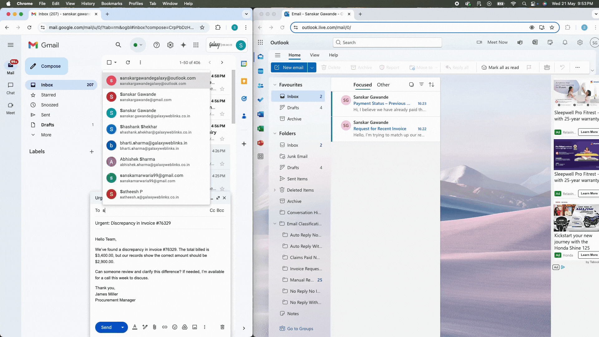 - Mixed topics in the same email