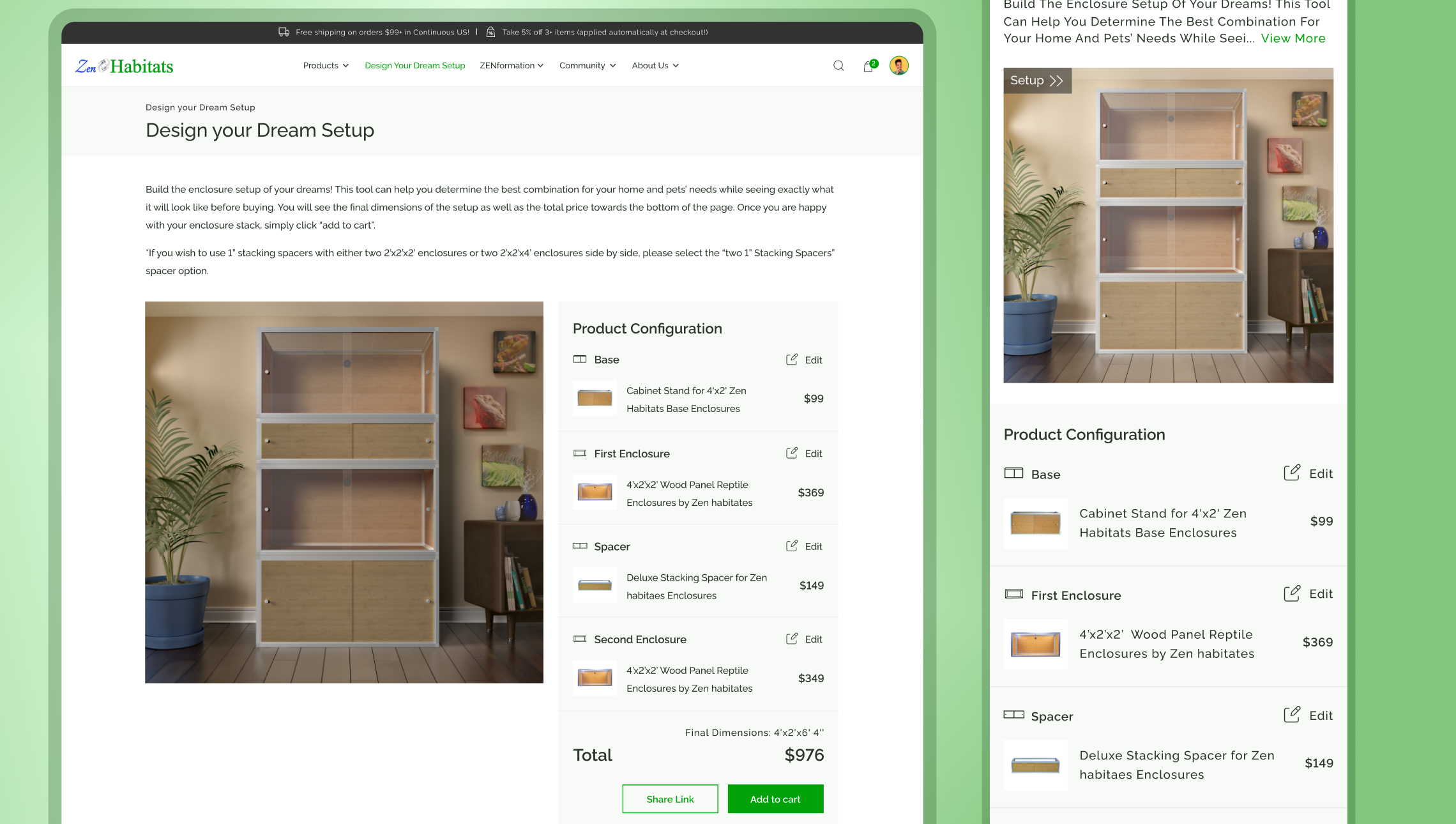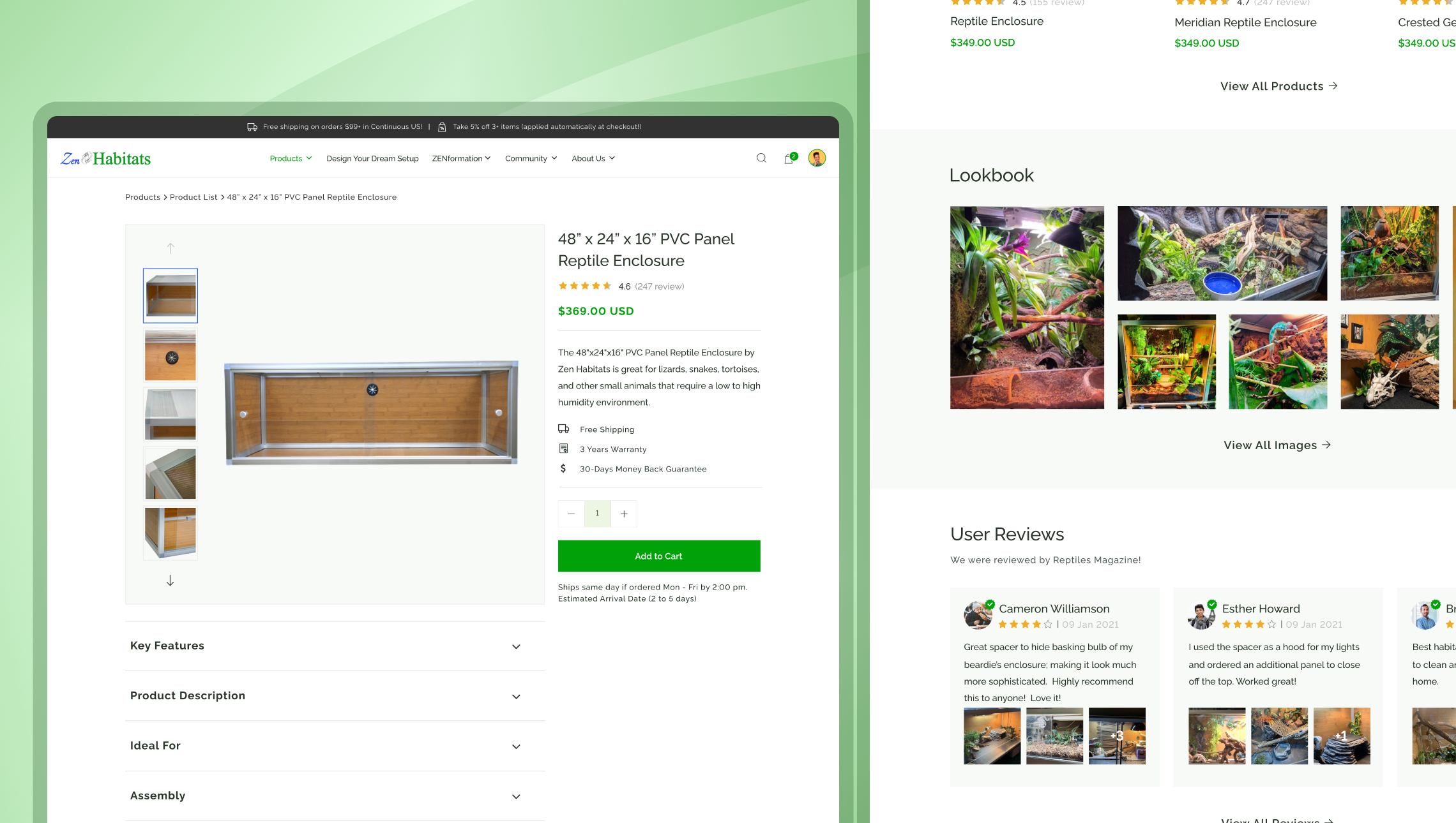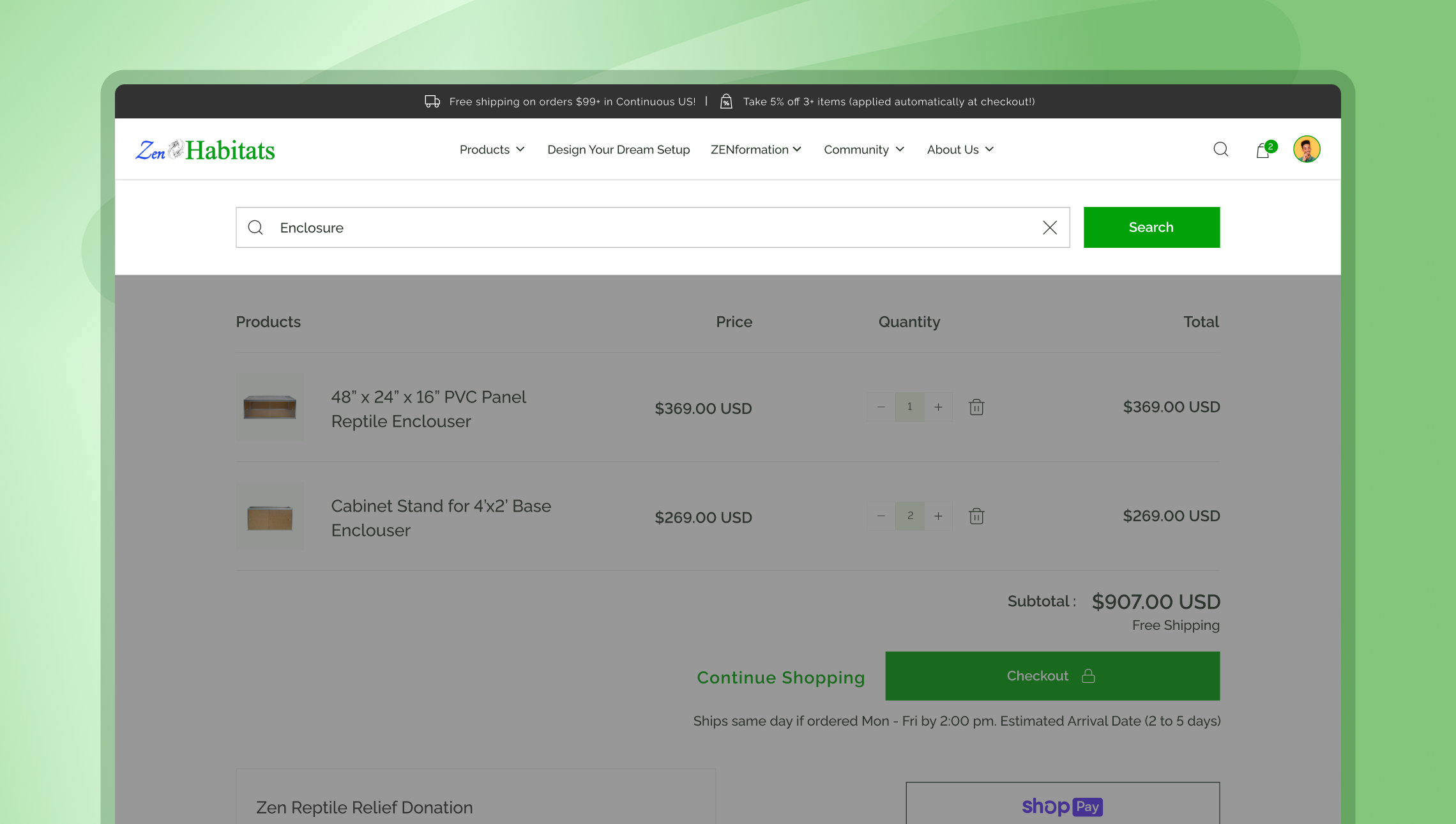 Zen Habitats is a leading manufacturer and seller of affordable reptile enclosures. In addition to creating healthy indoor habitats for reptiles, they also provide expert information and resources for reptile owners and enthusiasts. With 1000+ products spread across multiple SKUs, the client had initially set up an online store using Shopify but had to find a way to overcome issues with the online store.